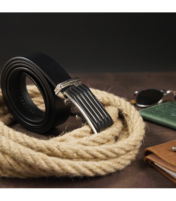 Ремінь чоловічий з автоматичною пряжкою смужка Vintage 20301 Чорний