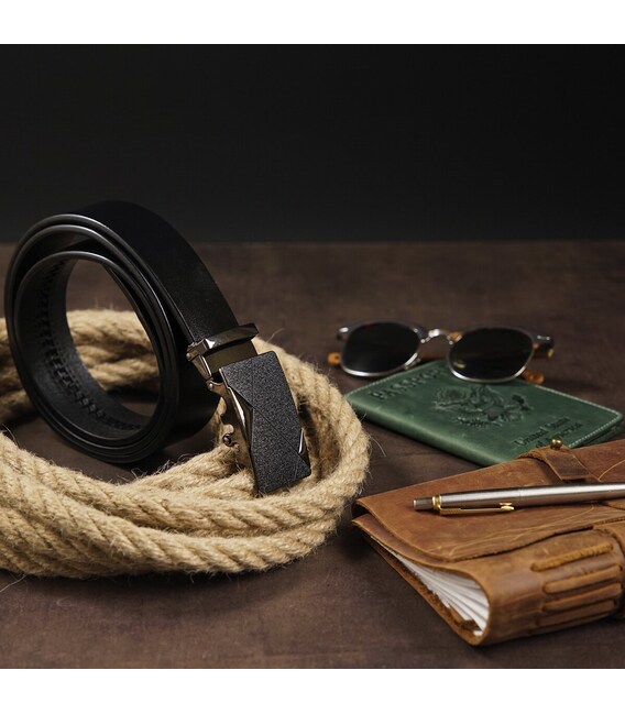 Чоловічий шкіряний ремінь класичного чорного кольору з чорною матовою пряжкою з зернистістю. Виріб виконаний з натуральної шкіри. Пряжка - темного кольору. Модель прекрасно підійде під будь-який образ. Якісний ремінь - обов'язковий елемент гардероба будь-якого чоловіка. Ремінь - автомат дуже практичний у використанні і прослужить вам далеко не один рік. Аксесуар прекрасно підійде в якості подарунка для будь-якого чоловіка.
