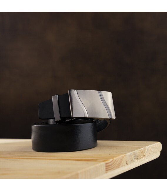 Ремінь чоловічий з пряжкою хвиля Vintage 20336 Чорний