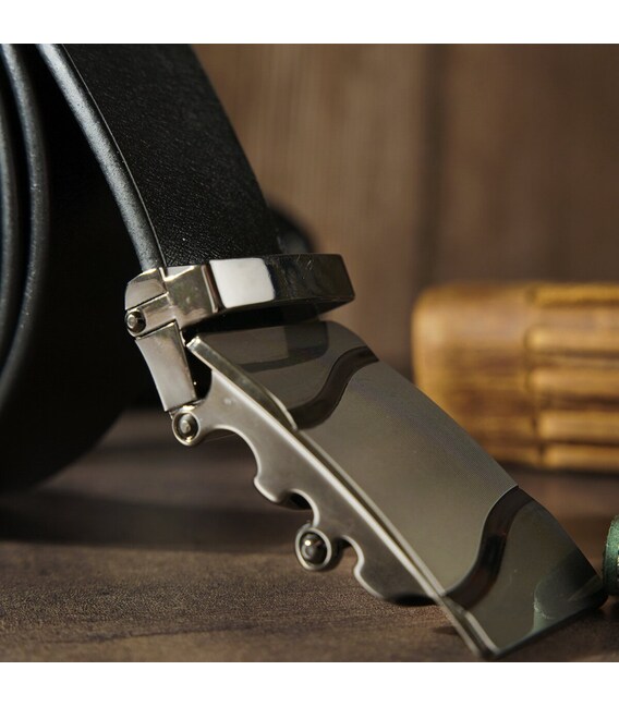 Ремінь чоловічий c затемненій пряжкою хвиля Vintage 20250 Чорний