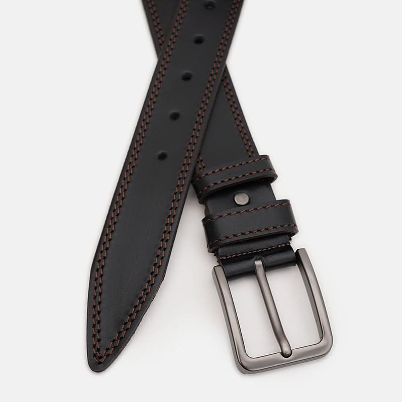 Чоловічий шкіряний ремінь. Якісні матеріали, стильна пряжка та акуратний зовнішній вигляд. Ремінь виконаний з натуральної шкіри та металевої фурнітури. Лицьова сторона ременя захищена від вологи, жиру та агресивних середовищ. Догляд – мінімальний (сухе чищення). При необхідності, ремінь можна вкоротити самостійно до потрібної довжини.