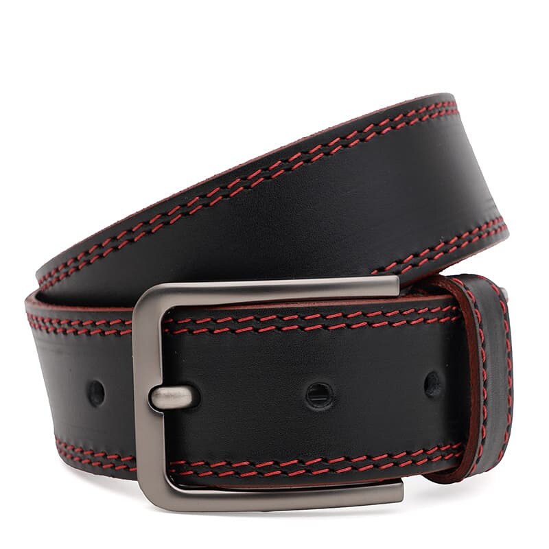 Чоловічий шкіряний ремінь. Якісні матеріали, стильна пряжка та акуратний зовнішній вигляд. Ремінь виконаний з натуральної шкіри та металевої фурнітури. Лицьова сторона ременя захищена від вологи, жиру та агресивних середовищ. Догляд – мінімальний (сухе чищення). При необхідності, ремінь можна вкоротити самостійно до потрібної довжини.