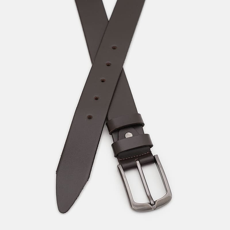 Чоловічий шкіряний ремінь. Якісні матеріали, стильна пряжка та акуратний зовнішній вигляд. Ремінь виконаний з натуральної шкіри та металевої фурнітури. Лицьова сторона ременя захищена від вологи, жиру та агресивних середовищ. Догляд – мінімальний (сухе чищення). При необхідності, ремінь можна вкоротити самостійно до потрібної довжини.