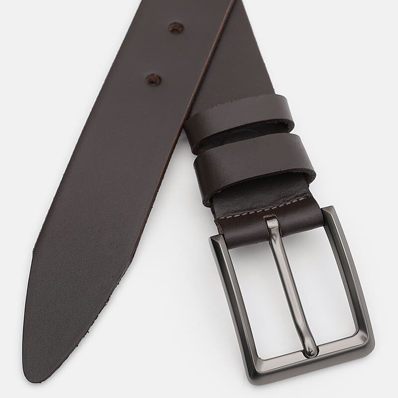 Чоловічий шкіряний ремінь. Якісні матеріали, стильна пряжка та охайний зовнішній вигляд. Ремінь виконаний з натуральної шкіри та металевої фурнітури. Лицьова сторона ременя захищена від вологи, жиру та агресивних середовищ. Догляд – мінімальний (сухе чищення). При необхідності, ремінь можна вкоротити самостійно до потрібної довжини.