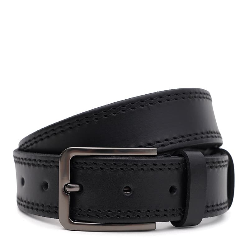 Чоловічий шкіряний ремінь. Якісні матеріали, стильна пряжка та охайний зовнішній вигляд. Ремінь виконаний з натуральної шкіри та металевої фурнітури. Лицьова сторона ременя захищена від вологи, жиру та агресивних середовищ. Догляд – мінімальний (сухе чищення). При необхідності, ремінь можна вкоротити самостійно до потрібної довжини.