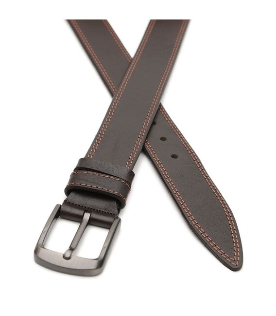 Чоловічий шкіряний ремінь. Якісні матеріали, стильна пряжка та акуратний зовнішній вигляд. Ремінь виконаний з натуральної шкіри та металевої фурнітури. Зроблено в Україні. Лицьова сторона ременя захищена від вологи, жиру та агресивних середовищ. Догляд – мінімальний (сухе чищення). При необхідності, ремінь можна вкоротити самостійно до потрібної довжини.