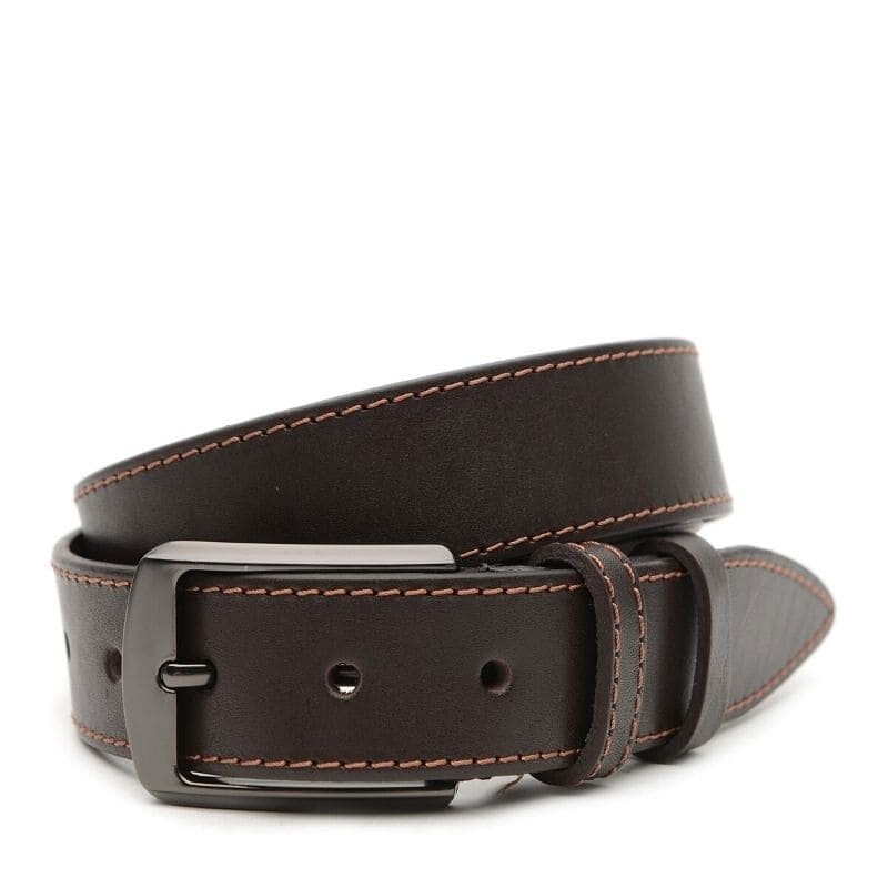 Чоловічий шкіряний ремінь. Якісні матеріали, стильна пряжка та акуратний зовнішній вигляд. Ремінь виконаний з натуральної шкіри та металевої фурнітури. Зроблено в Україні. Лицьова сторона ременя захищена від вологи, жиру та агресивних середовищ. Догляд – мінімальний (сухе чищення). При необхідності, ремінь можна вкоротити самостійно до потрібної довжини.
