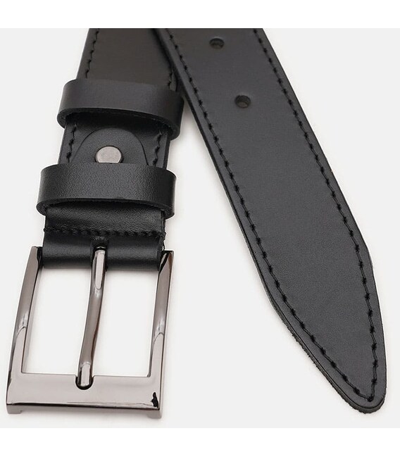 Чоловічий шкіряний ремінь. Якісні матеріали, стильна пряжка та акуратний зовнішній вигляд. Ремінь виконаний із натуральної української шкіри та металевої фурнітури. Лицьова сторона ременя захищена від вологи, жиру та агресивних середовищ. Догляд – мінімальний (сухе чищення). При необхідності, ремінь можна вкоротити самостійно до потрібної довжини.