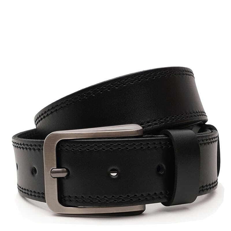 Чоловічий шкіряний ремінь. Якісні матеріали, стильна пряжка та акуратний зовнішній вигляд. Ремінь виконаний із натуральної української шкіри та металевої фурнітури. Лицьова сторона ременя захищена від вологи, жиру та агресивних середовищ. Догляд – мінімальний (сухе чищення). При необхідності, ремінь можна вкоротити самостійно до потрібної довжини.
