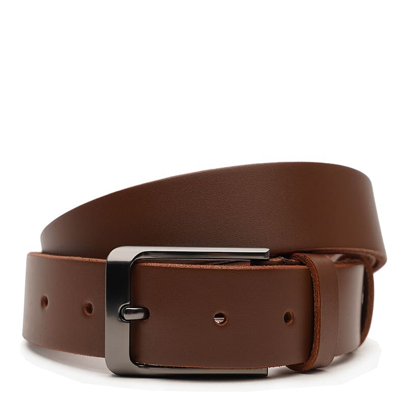 Чоловічий шкіряний ремінь. Якісні матеріали, стильна пряжка та акуратний зовнішній вигляд. Ремінь виконаний із натуральної української шкіри та металевої фурнітури. Лицьова сторона ременя захищена від вологи, жиру та агресивних середовищ. Догляд – мінімальний (сухе чищення). При необхідності, ремінь можна вкоротити самостійно до потрібної довжини.