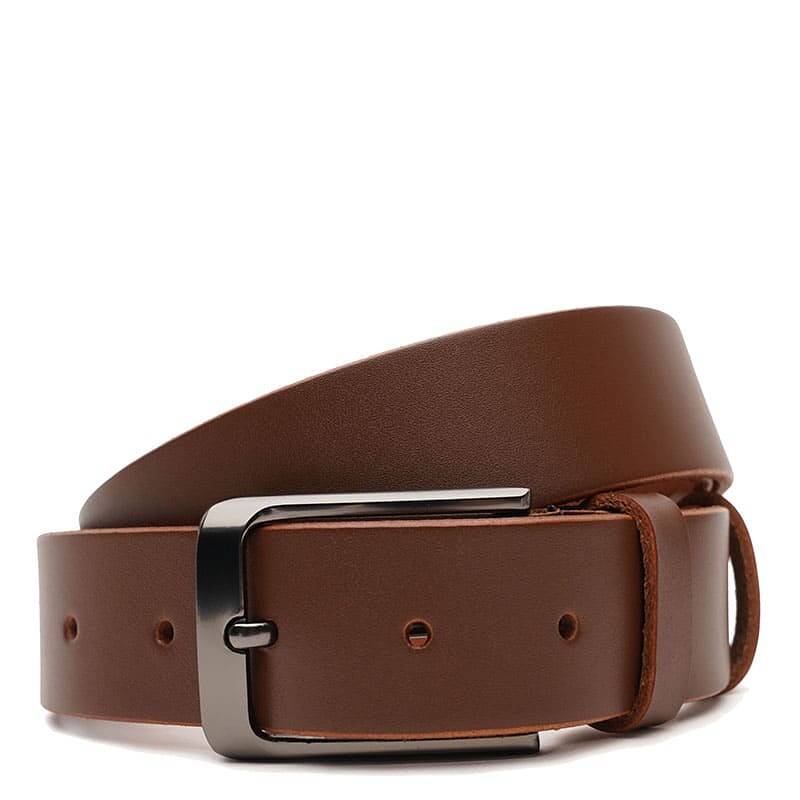 Чоловічий шкіряний ремінь. Якісні матеріали, стильна пряжка та акуратний зовнішній вигляд. Ремінь виконаний із натуральної української шкіри та металевої фурнітури. Лицьова сторона ременя захищена від вологи, жиру та агресивних середовищ. Догляд – мінімальний (сухе чищення). При необхідності, ремінь можна вкоротити самостійно до потрібної довжини.
