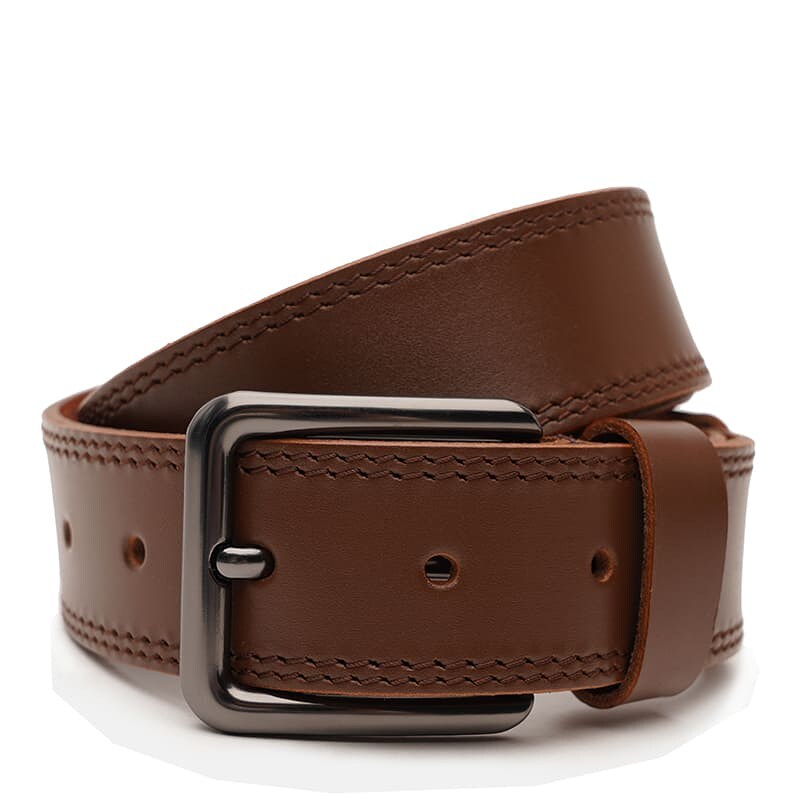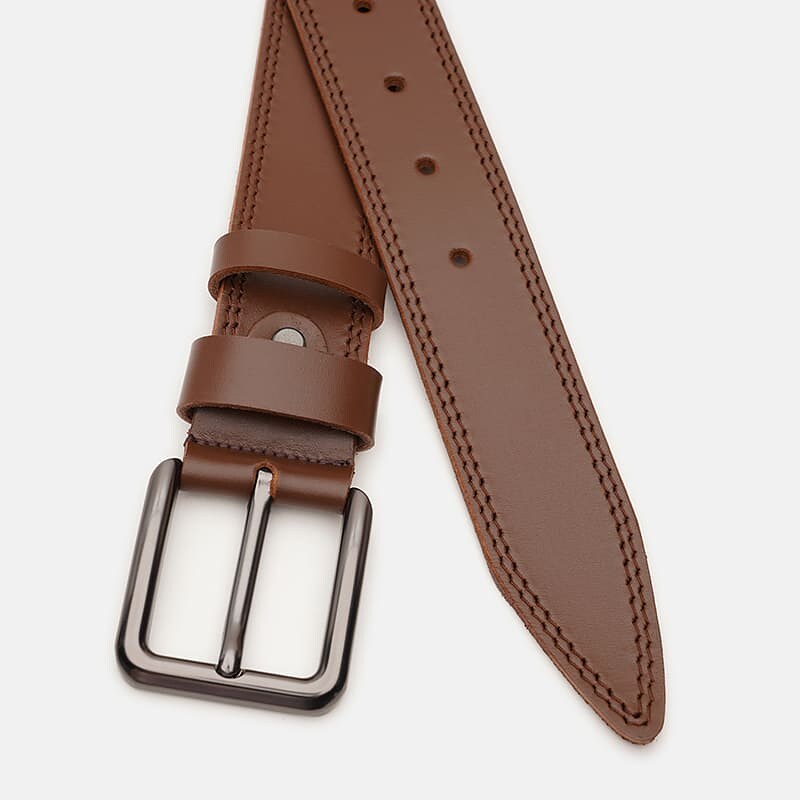 Чоловічий шкіряний ремінь. Якісні матеріали, стильна пряжка та акуратний зовнішній вигляд. Ремінь виконаний із натуральної української шкіри та металевої фурнітури. Лицьова сторона ременя захищена від вологи, жиру та агресивних середовищ. Догляд – мінімальний (сухе чищення). При необхідності, ремінь можна вкоротити самостійно до потрібної довжини.
