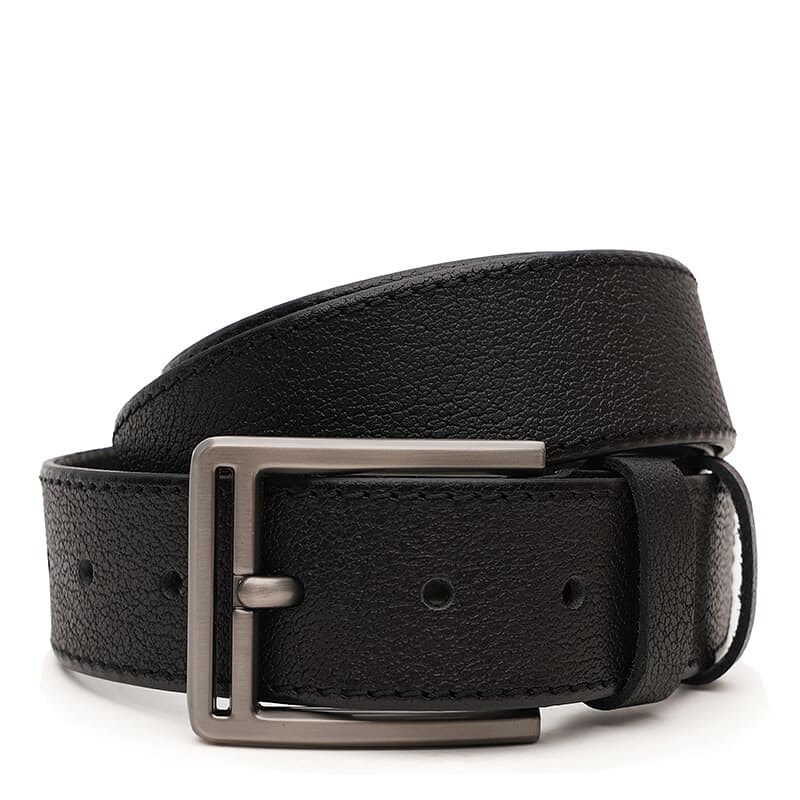 Чоловічий шкіряний ремінь. Якісні матеріали, стильна пряжка та акуратний зовнішній вигляд. Ремінь виконаний із натуральної української шкіри та металевої фурнітури. Лицьова сторона ременя захищена від вологи, жиру та агресивних середовищ. Догляд – мінімальний (сухе чищення). При необхідності, ремінь можна вкоротити самостійно до потрібної довжини.