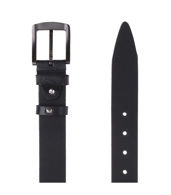 Чоловічий шкіряний ремінь. Якісні матеріали, стильна металева пряжка і акуратний зовнішній вигляд. Ремінь виконаний з натуральної телячої шкіри та металевої фурнітури. Лицьова сторона ременя захищена від вологи, жиру і агресивних середовищ. Догляд - мінімальний, при необхідності (суха чистка).