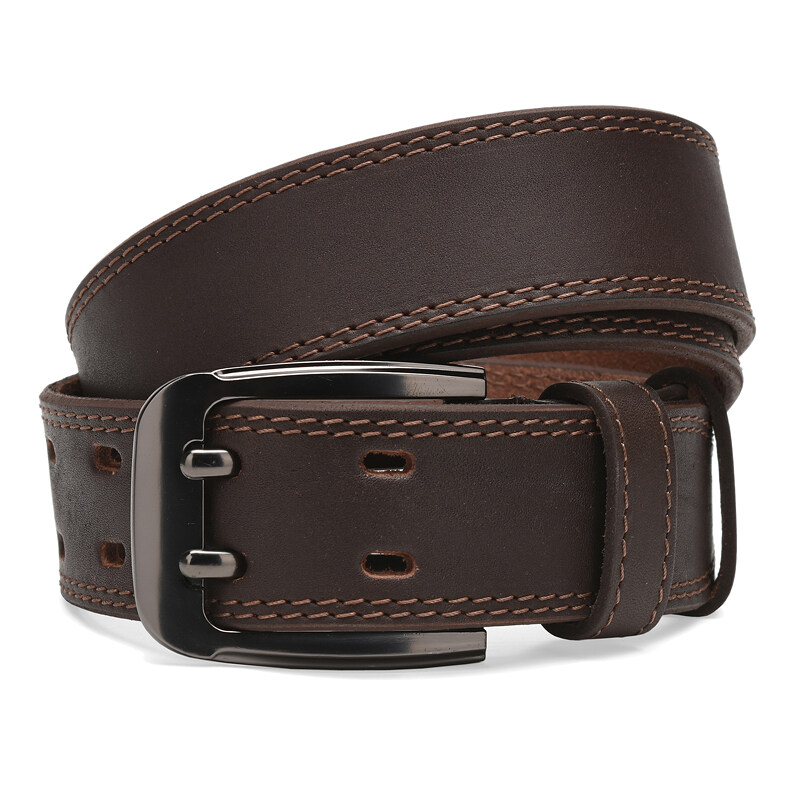 Чоловічий шкіряний ремінь. Якісні матеріали, стильна пряжка і акуратний зовнішній вигляд. Ремінь виконаний з натуральної шкіри і металевої фурнітури. Купуючи шкіряний ремінь, ви вже дуже сильно економите, адже він прослужить вам роки. Зроблено в Україні. При необхідності ремінь можна вкоротити під свій розмір. Лицьова сторона ременя захищена від вологи, жиру і агресивних середовищ. Догляд - мінімальний (суха чистка).