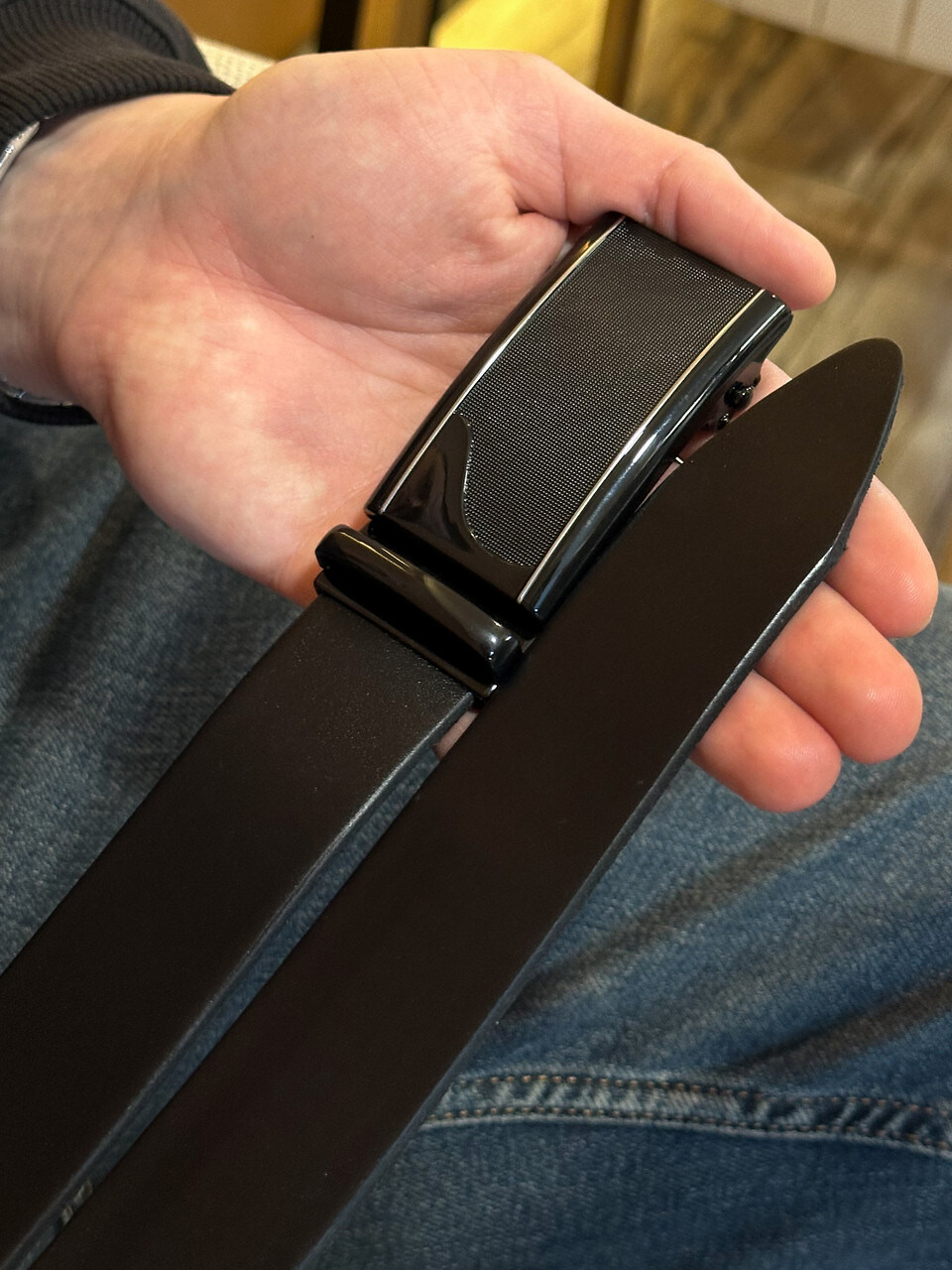 Чоловічий шкіряний ремінь із пряжкою автомат 8490 картинка, зображення, фото