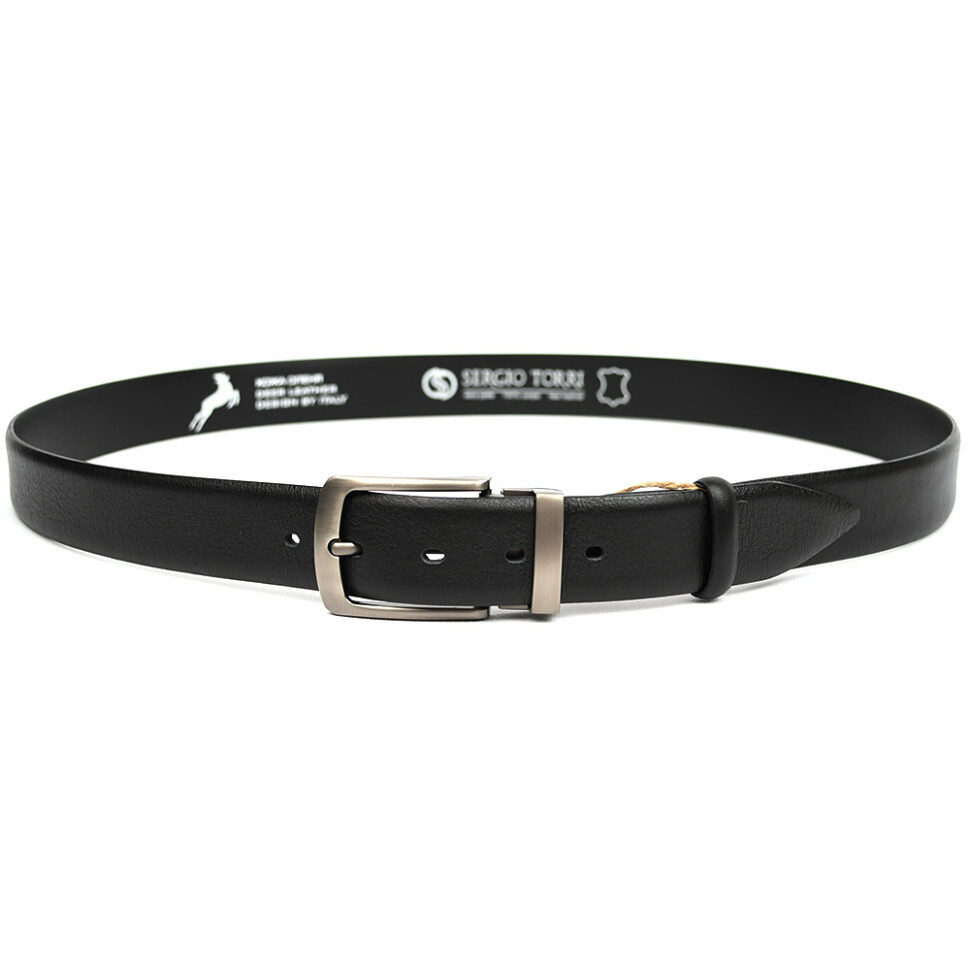 Ремінь із шкіри оленя 35мм чорний класична пряжка Sergio Torri ST2027D. Ремінь підходить як для штанів, так і для джинсів. Колір шкіри – чорний. Пряжка класична, металева