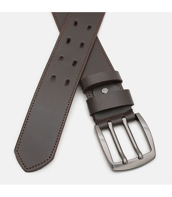 Чоловічий шкіряний ремінь. Якісні матеріали, стильна пряжка та акуратний зовнішній вигляд. Ремінь виконаний з натуральної шкіри та металевої фурнітури. Лицьова сторона ременя захищена від вологи, жиру та агресивних середовищ. Догляд – мінімальний (сухе чищення). При необхідності, ремінь можна вкоротити самостійно до потрібної довжини.