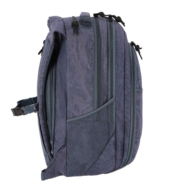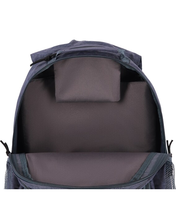 Усередині основного відділення є м’яка вставка для ноутбука, а на спинці — прихований відсік для цінних речей. Бокові сітчасті кишені підійдуть для пляшки або перекусу, передня — для найнеобхіднішого. Усі відділення оснащені подвійними блискавками, тож їх зручно відкривати з будь-якого боку й швидко діставати потрібне.