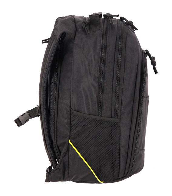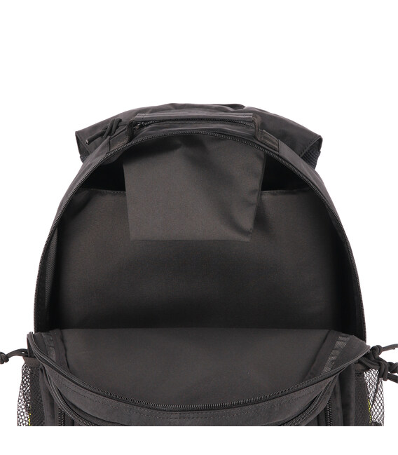 Усередині основного відділення є м’яка вставка для ноутбука, а на спинці — прихований відсік для цінних речей. Бокові сітчасті кишені підійдуть для пляшки або перекусу, передня — для найнеобхіднішого. Усі відділення оснащені подвійними блискавками, тож їх зручно відкривати з будь-якого боку й швидко діставати потрібне.