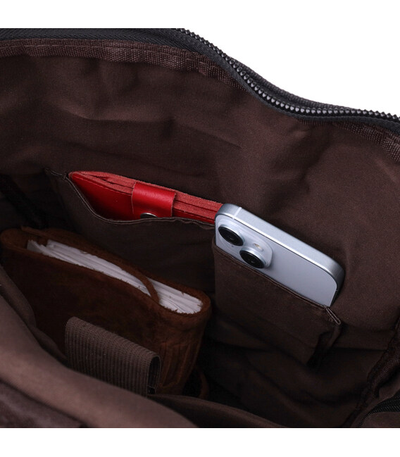 - всередині: дві накладні кишені для мобільного та ущільнена кишеня для ноутбука на липучці;