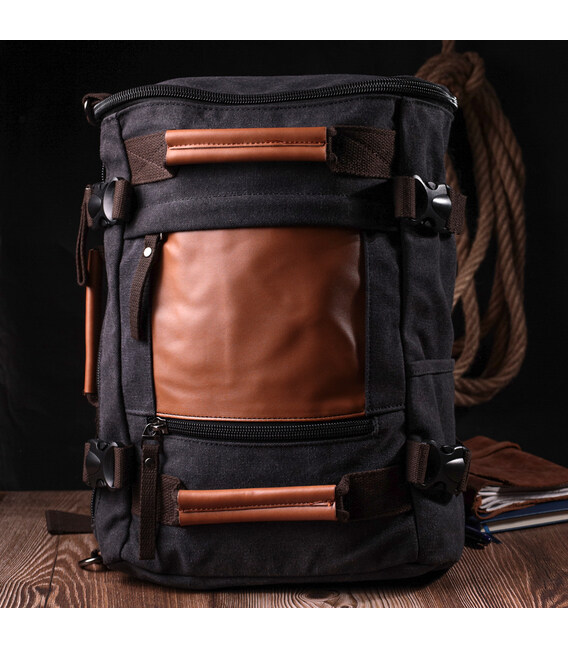 Текстильний великий дорожній рюкзак трансформер Vintage sale_15074 Чорний
