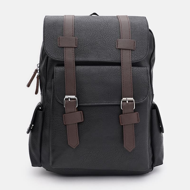 Чоловічий рюкзак виконаний із якісної штучної шкіри. Головне відділення закривається на блискавку. Всередині 3 кишені для телефону та дрібниць. З зовнішнього боку є 1 кишеню на кнопках, а також з боків - по 1 кишені на кнопках. Підкладка-текстиль. Незнімні лямки регулюються за довжиною.