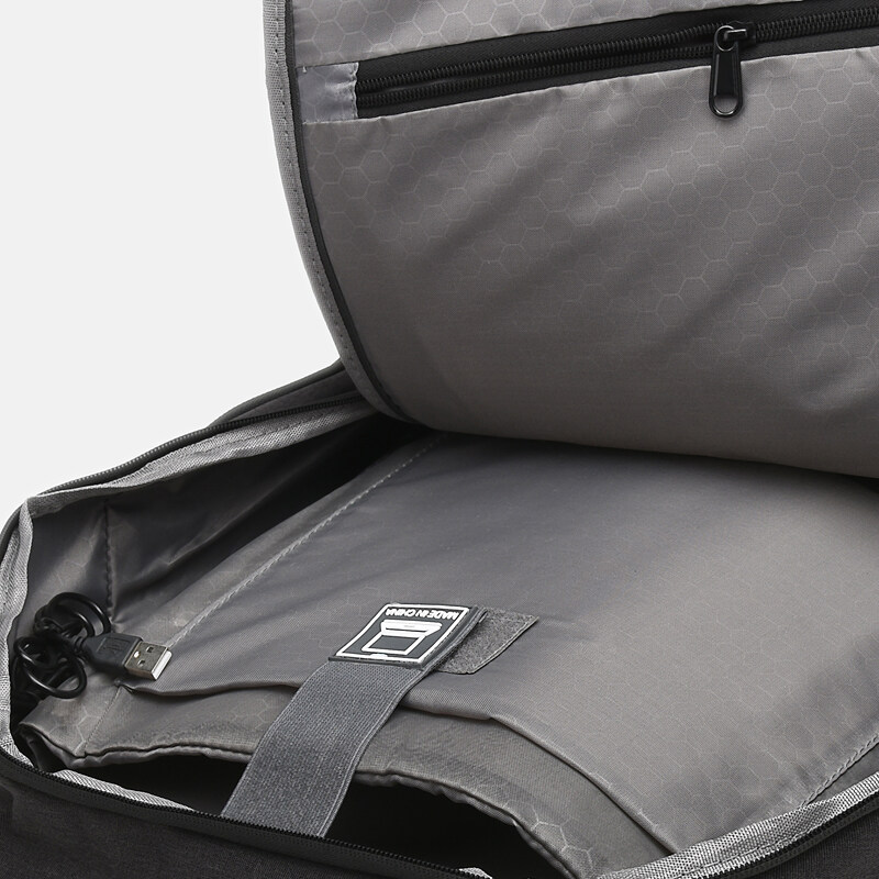 Рюкзак виконаний з міцного матеріалу. Підходить для носіння ноутбука, повсякденного використання і для подорожей. Має основне відділення для речей, відділення для ноутбука, 2 кишені для телефону та інших потрібних речей. Зовні 2 бічні кишені на блискавці. Є USB порт і провід. Спинка рюкзака дихаюча і вентильована, лямки легко регулюються, фіксуючи рюкзак на спині. Підкладка текстиль.