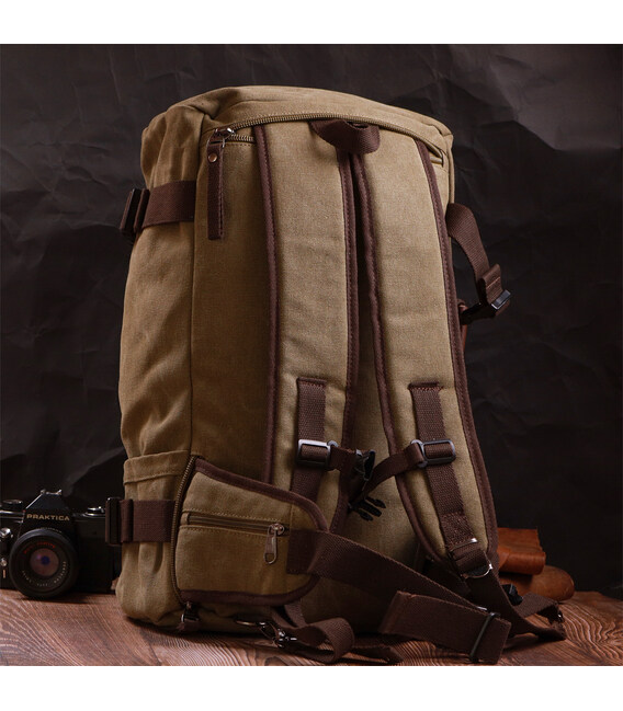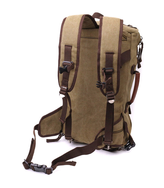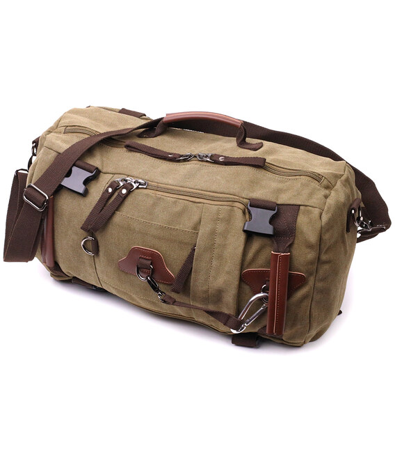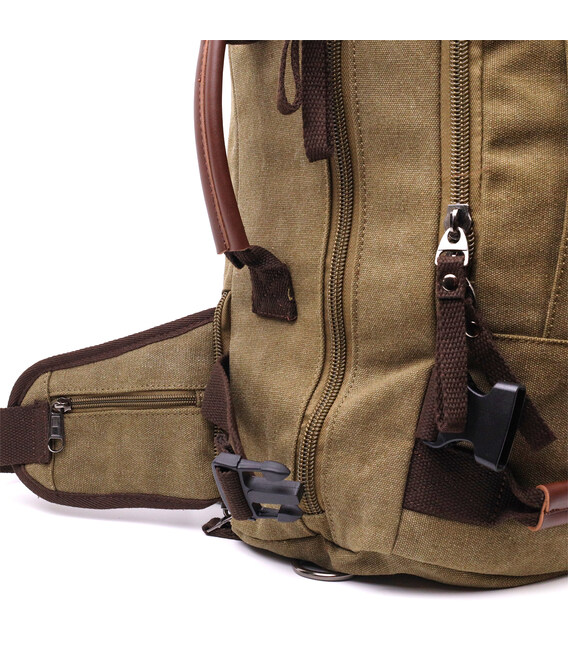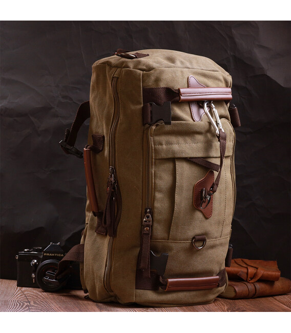 Місткий рюкзак-трансформер у стилі мілітарі із щільного текстилю Vintage 22158 Оливковий