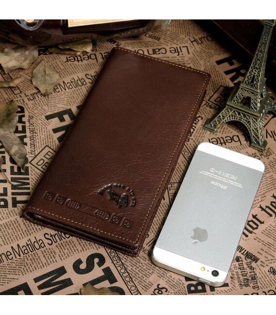 Чудовий чоловічий шкіряний гаманець. Виглядає гаманець дуже дорого і красиво. Аксесуар прошитий міцною ниткою світло-коричневого кольору. Такий гаманець можна подарувати в День Народження сина, батька, брата чи чоловіка. Служити виріб буде довгий час.