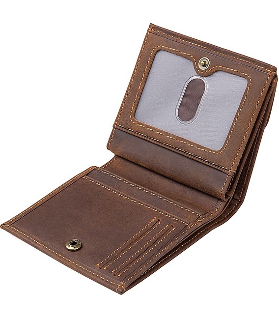 Стильний невеликий гаманець з високоякісної натуральної вінтажної шкіри, особливість цієї шкіри в тому, що вона дуже чутлива до дотиків , на ній швидко і легко з'являються подряпини, так що вже через 2-3 тижні використання можна сміливо називати свій виріб унікальним і неповторним. Згодом шкіра затирається і шліфується, так що деякі сліди зникнуть самі собою.