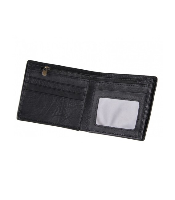 Горизонтальний чоловічий гаманець чорного кольору. Аксесуар виконаний з натуральної високоякісної фактурної шкіри приємної на дотик. Аксесуар упакований в білий пилозахисний мішок.