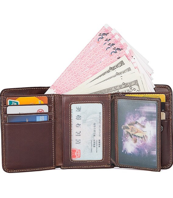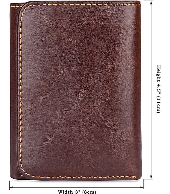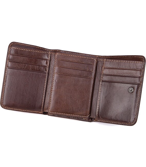 Зручний шкіряний гаманець. Усередині гаманець має велику кишеню для купюр, які поміщаються в розгорнутому вигляді. Виріб має відділення для карток і прозору кишеню для документів. Сам аксесуар складається в два рази і закривається на кнопку. На задній стороні аксесуару розташована монетниця, яка надає власнику гаманця швидкий доступ до дрібниці, не відкриваючи при цьому сам гаманець. Аксесуар легко поміщається в кишеню будь-яких штанів і не займає багато місця в сумці або середніх розмірів барсетки. Гаманець упакований в текстильний пилозахисний чохол.
