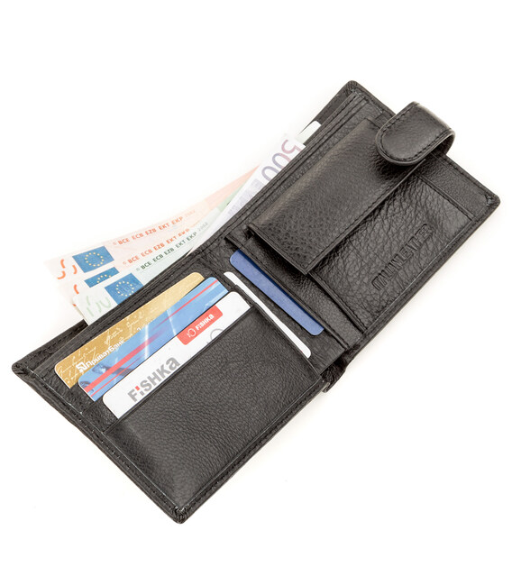 Чоловічий шкіряний купюрник для карток купюр та монет ST Leather 18308 Чорний