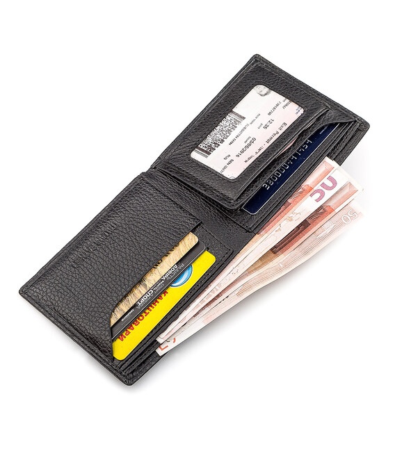 Відмінна модель гаманця для любителів мінімалізму. Виріб не має габаритної застібки і кишені для монет. Аксесуар оснащений двома відділеннями для купюр і слотами для банківських карт. Також є куточок-тримач, кишеня прилеглого типу і прозоре відділення для фото або документів. На лицьовій стороні зображений оновлений брендовий знак. Матеріалом для виготовлення даної моделі гаманця обрана якісна, натуральна шкіра, завдяки чому аксесуар відрізняється міцністю і зносостійкістю.
