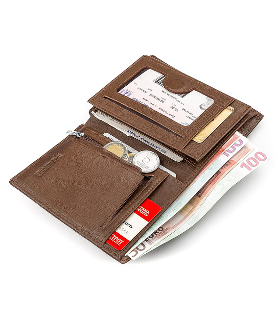 Невеликий, але при цьому досить місткий і функціональний чоловічий купюрник з натуральної шкіри. Лицьова сторона даного виробу прикрашена металевим логотипом компанії виробника. Гаманець упакований в красиву фірмову коробочку, тому він може бути використаний в якості подарунку.