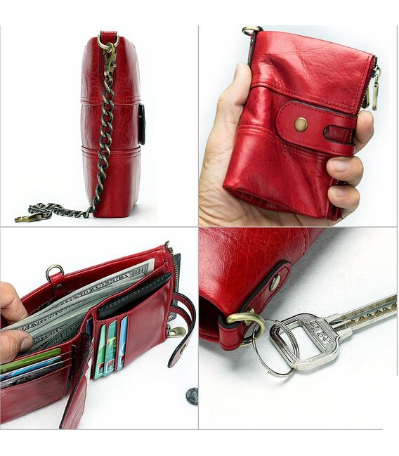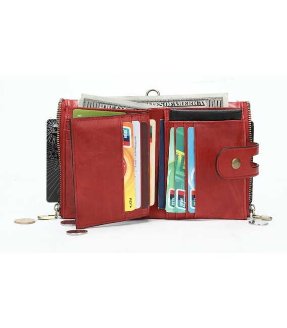 Один з найбільш улюблених гаманців багатьох клієнтів. Його функціоналу можна позаздрити. Його унікальною особливістю є те, що обсяг заповнення можна регулювати за допомогою двох кнопок на різній відстані. Модель підійде як для чоловіків, так і представниць жіночої статі. По краях аксесуар акуратно прошитий червоною ниткою. Ви можете носити в такому гаманці купу різних карток, візиток і заповнити кишеньки всім необхідним. Якщо ви вибираєте подарунок - варто придивитися до цього варіанту, впевнені, він вразить будь-кого.