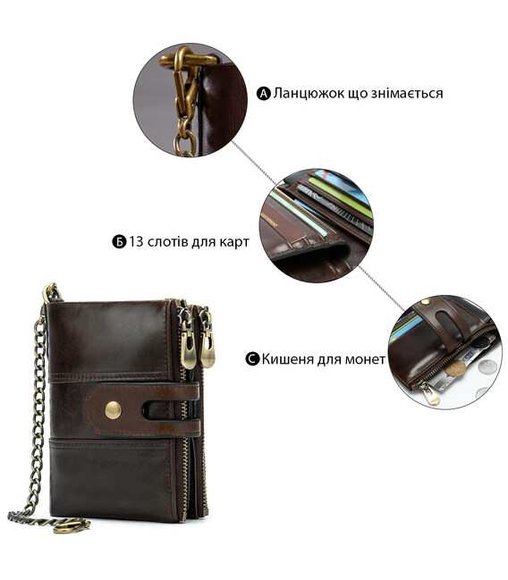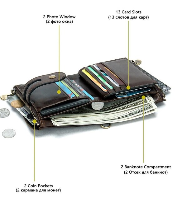 Унікальною особливістю такого гаманця є те, що ви самі можете регулювати обсяг заповнення його. У аксесуарі 2 кнопки. Величезний функціонал вразить будь-якого клієнта. Гаманець зовсім не примхливий у використанні. І відмінно носиться роками. З таким функціональним гаманцем ви точно нічого не забудете. Може бути прекрасним подарунком для близької людини.