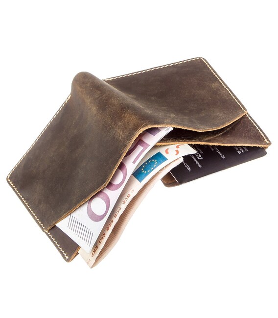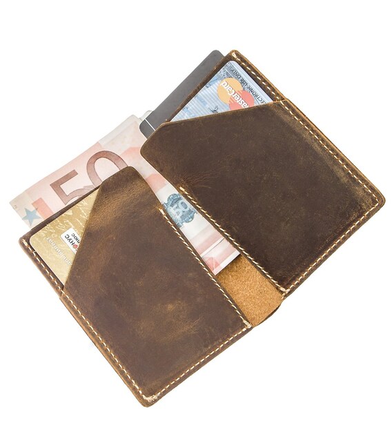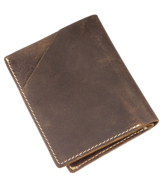 Компактний гаманець з мінімальним розміром темно-коричневого кольору. Модель має мінімальний, але самий необхідний функціонал. Гаманець вміститься в кишеню брюк. Виріб підходить як чоловікам, так і жінкам. Вінтажна шкіра, з якої виконано гаманець користується особливою популярністю серед клієнтів. А її основною родзинкою є те, що з часом на такій шкірі виступають своєрідні подряпини і потертості, які надають їй шарм. Такий гаманець буде чудовим подарунком для ваших близьких.