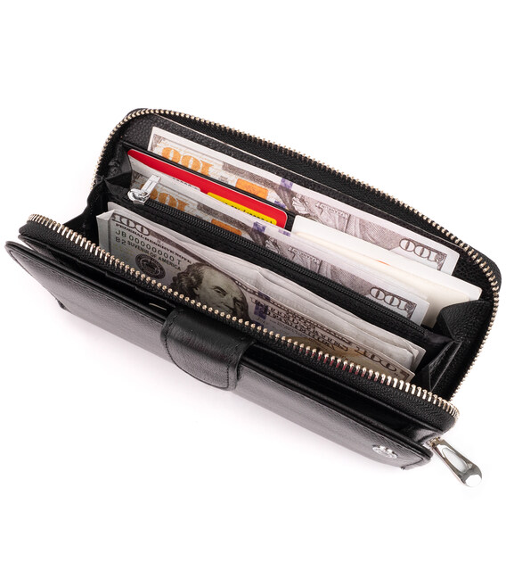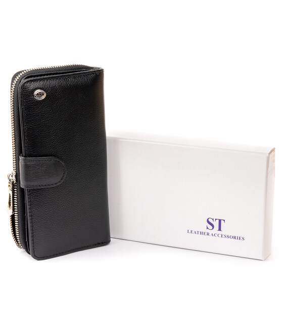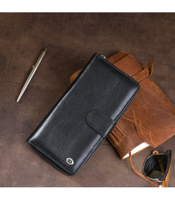 Вертикальний місткий гаманець зі шкіри унісекс ST Leather 19300 Чорний
