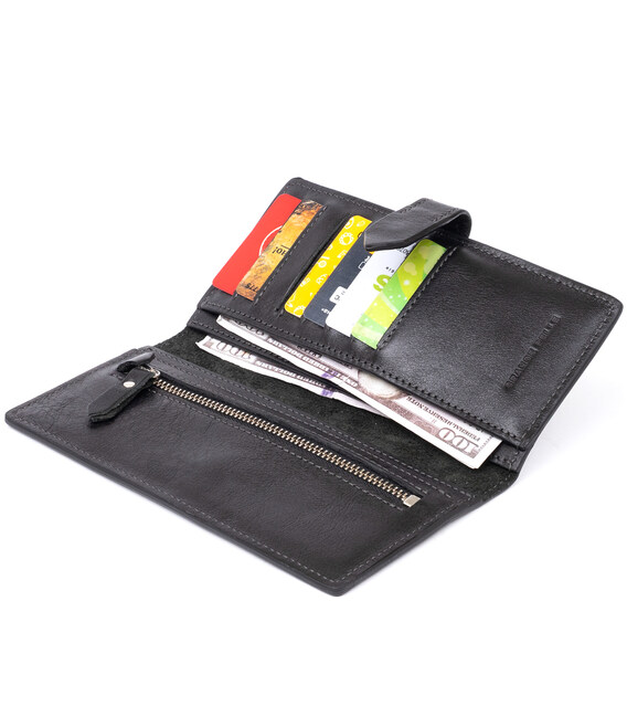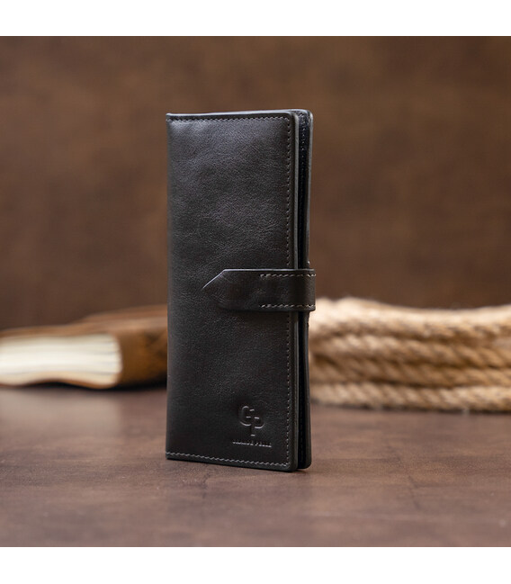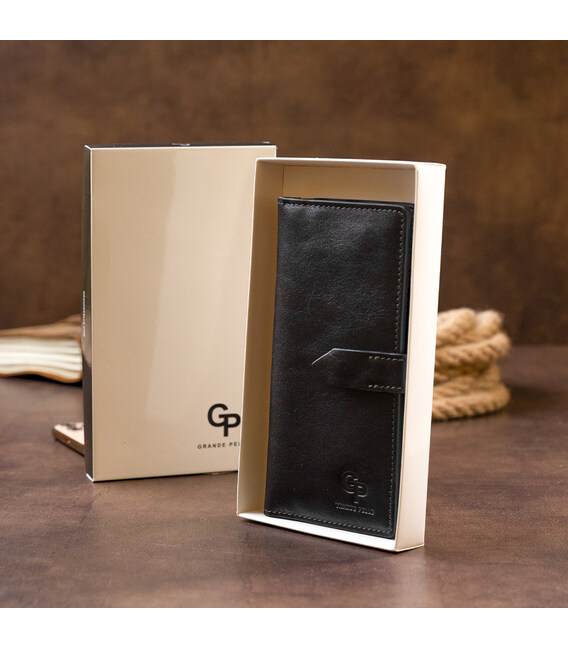 Вертикальний гаманець глянсовий Anet на кнопці GRANDE PELLE 11324 Чорний