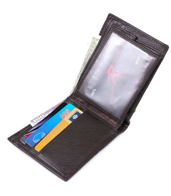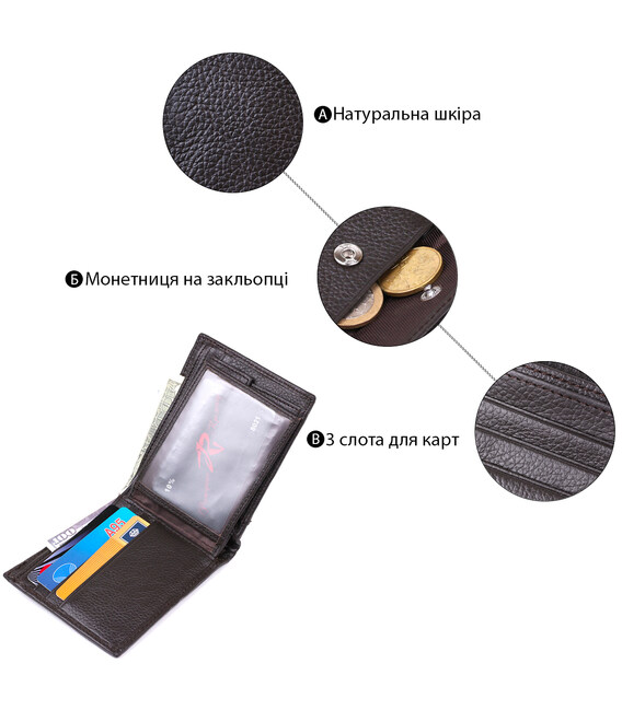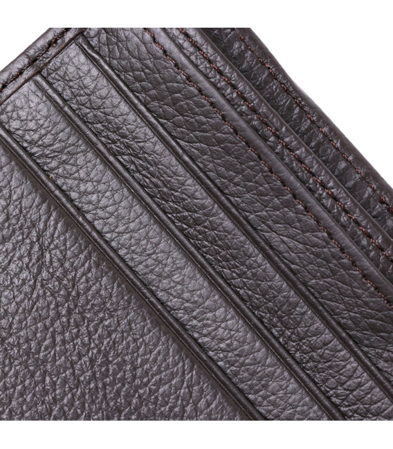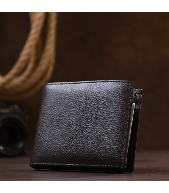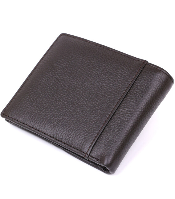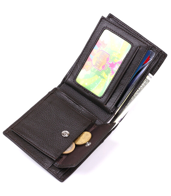 Добротний чоловічий гаманець із високоякісної шкіри з підвищеними показниками зносостійкості. Внутрішнє наповнення представлене у вигляді відділень для купюр, слотів для різних карток, кишеньок для посвідчення та компактної монетниці на кнопці. Портмоне виконано у красивому коричневому кольорі та має матову фактуру.