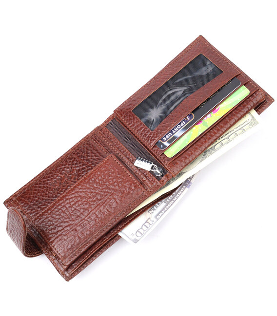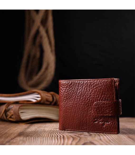 Детальніше Практичний чоловічий гаманець з хлястиком із натуральної шкіри KARYA 21075 Світло-коричневий