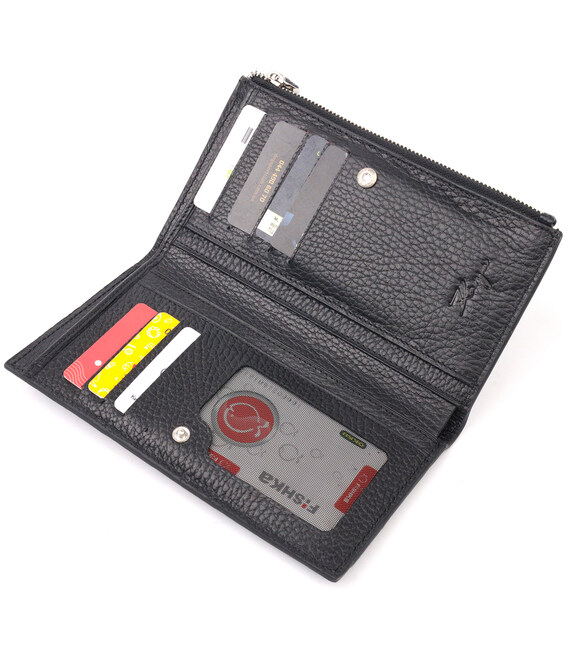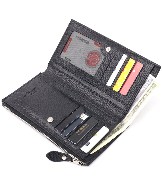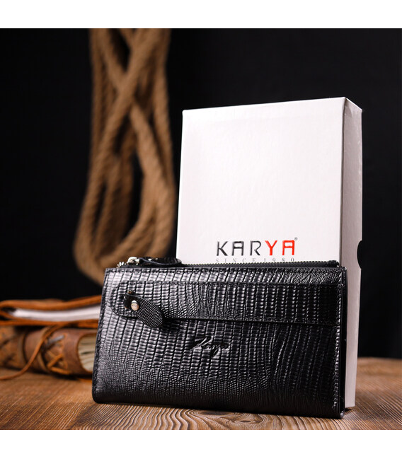 Сучасний складний гаманець із натуральної фактурної шкіри KARYA 21129 Чорний