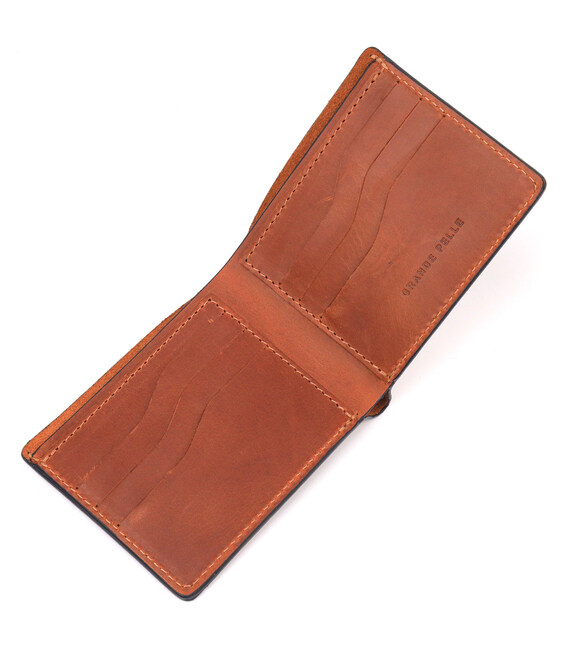 Надійний чоловічий шкіряний гаманець у два складання Україна GRANDE PELLE 16738 Світло-коричневий