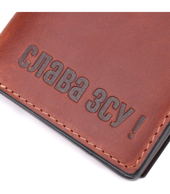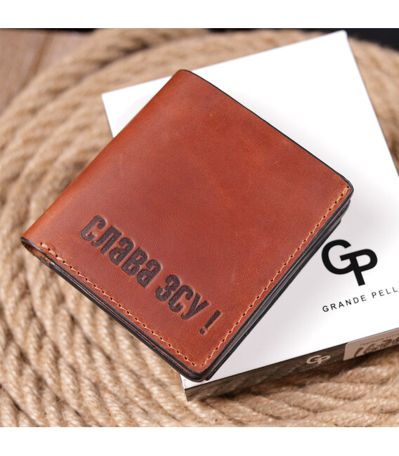 Чоловічий гаманець із вінтажної шкіри із монетницею Слава ЗСУ GRANDE PELLE 16756 Світло-коричневий