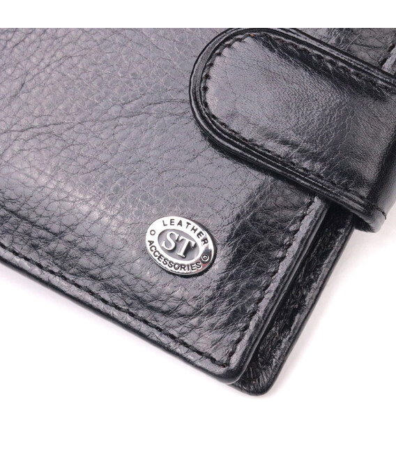 Чоловічий гаманець з натуральної гладкої шкіри у два додавання ST Leather 19409 Чорний