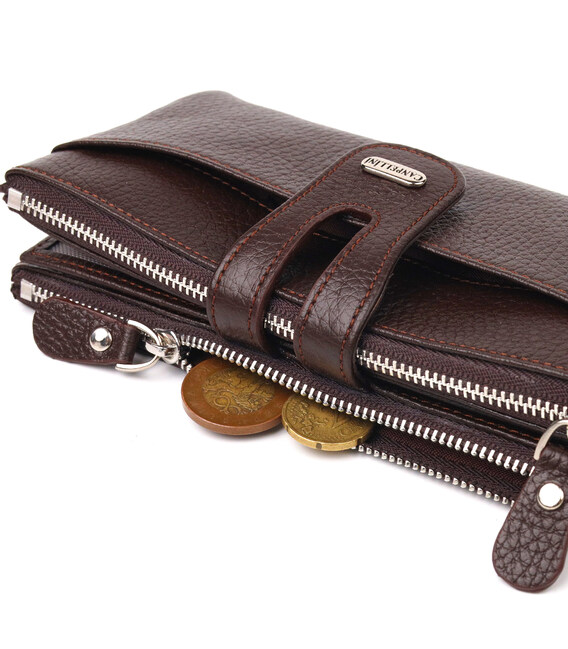 Практичний гаманець із натуральної зернистої шкіри CANPELLINI 21632 Коричневий