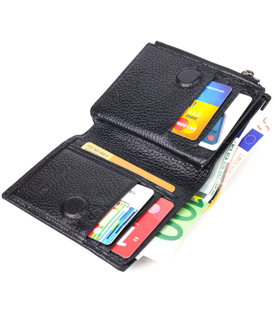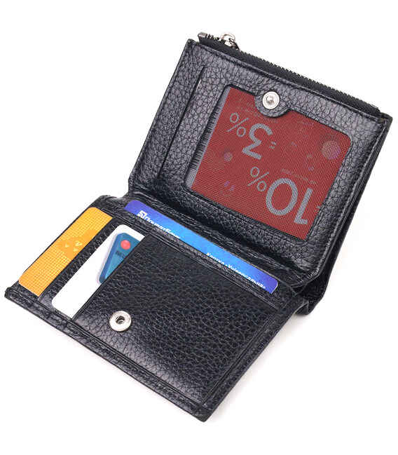 Практичний гаманець компактного розміру з натуральної шкіри. Аксесуар має відділення для купюр, монетницю, що закривається на блискавку, дві приховані кишені та десять осередків для карток, один під сіточкою. Закривається аксесуар у два складання на кнопку. Якісний шкіряний аксесуар завжди вважався показником смаку та достатку, саме такі вироби представлені у нашому магазині, у нас кожен знайде щось для себе.