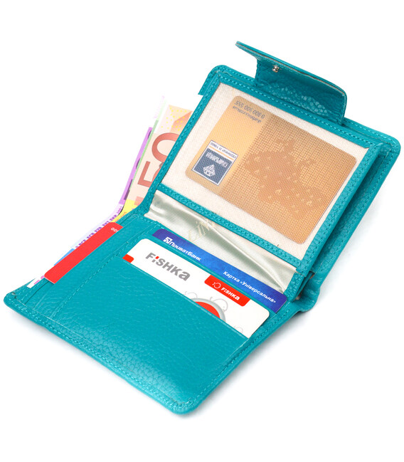 Жіночий яскравий гаманець компактного розміру з натуральної шкіри, насиченого красивого кольору. Аксесуар має відділення для купюр з перегородкою, монетницю, що закривається клапаном на кнопку, приховану кишеню та сім відсіків для карток, два з них під сіточкою. Закривається аксесуар у два складання хлястиком на кнопку. Якісний шкіряний аксесуар завжди вважався показником смаку та достатку, саме такі вироби представлені у нашому магазині, у нас кожен знайде щось для себе.